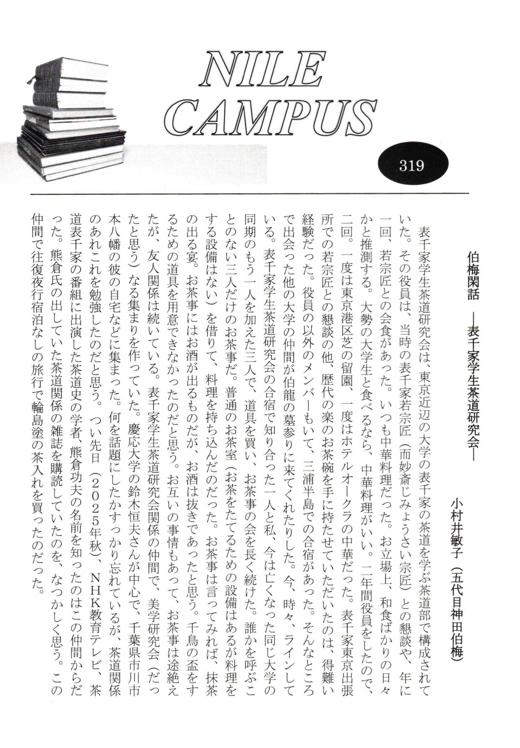 トップページに「2026年01月号より「伯梅閑話」-表千家学生茶道研究会-」 をアップしました。