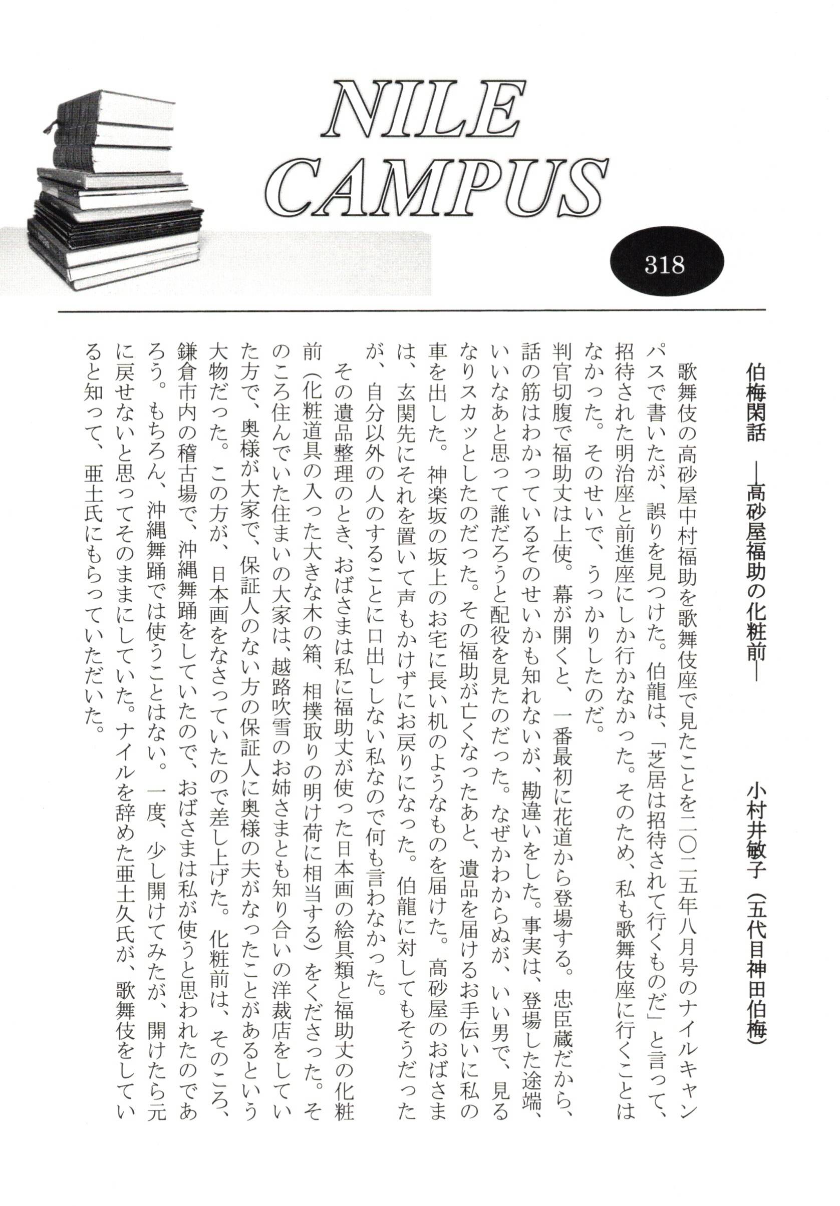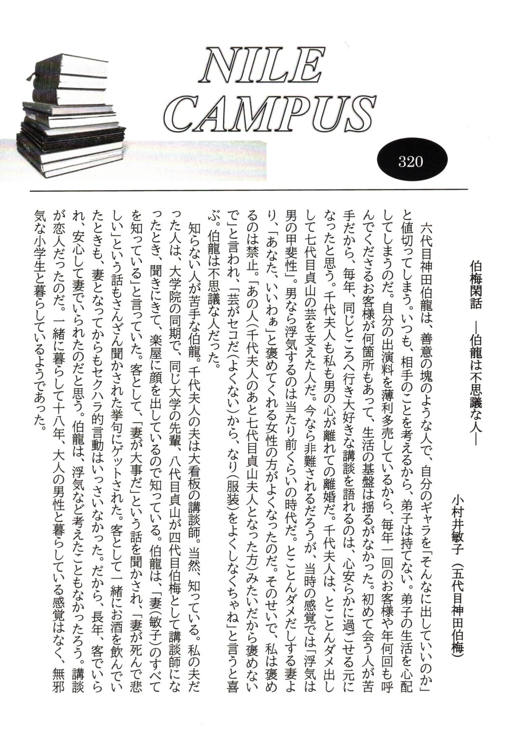 2022年1月号より「伯梅閑話」連載開始 小村井敏子(五代目神田伯梅)